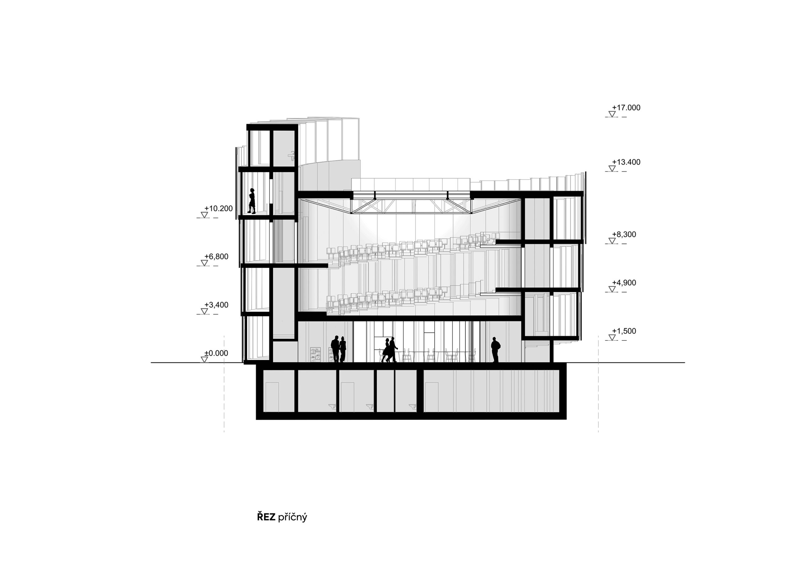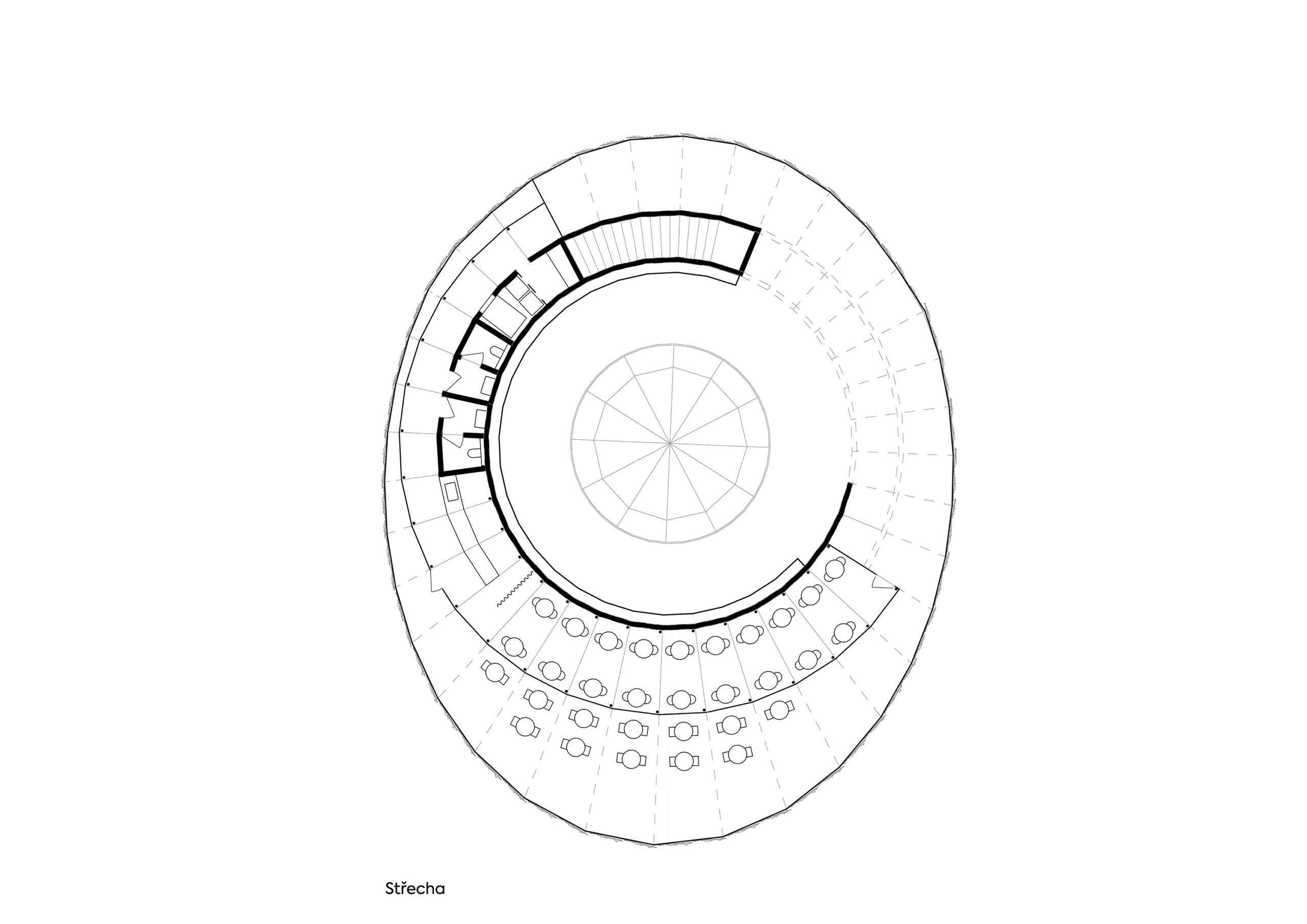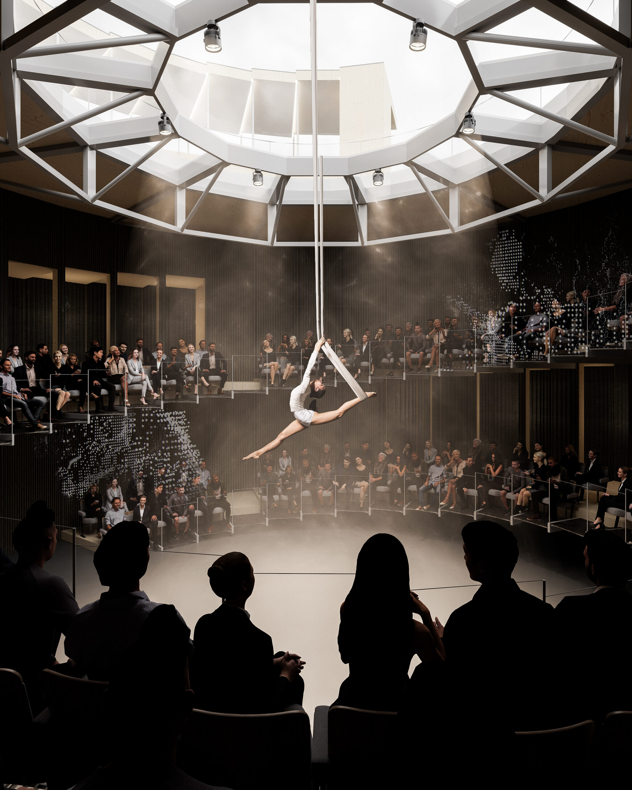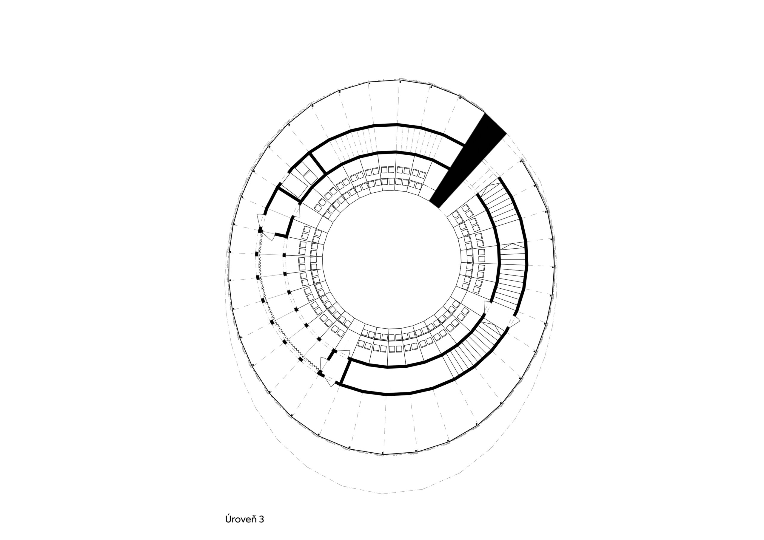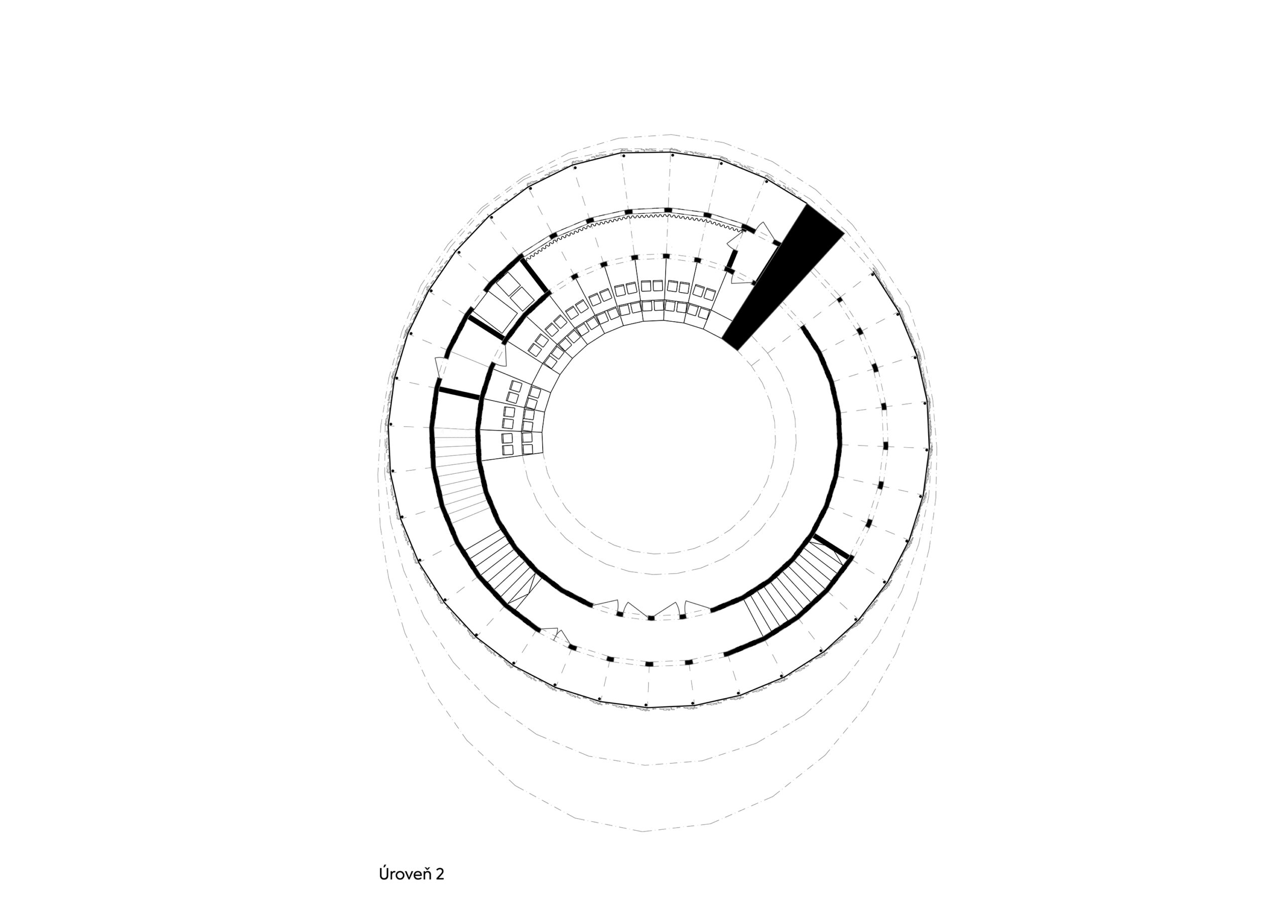 Koncepční myšlenkou nosné konstrukce je pravidelný rámový systém dřevěných CLT panelů, které vytvářejí spojitou konstrukci důsledně dodržující zvolený koncept v podobě spirálovité výstavní rampy, rozdělené na šestatřicet segmentů v rámci jedné otočky kolem auditoria. Pravidelně dělené segmenty zajišťují dostatečnou staveništní připravenost, demontovatelnost a přepravitelnost.